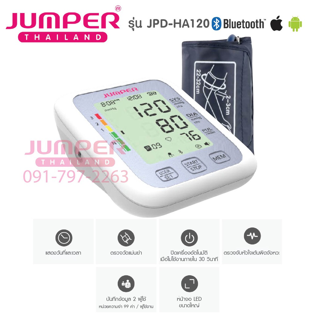เครื่องวัดความดัน JUMPER รุ่น JPDHA120 รับประกัน 5 ปี Blood Pressure Jumper Bluetooth Blood Pressure Monitor Our blood pressure monitor features advanced technology to. jumper blood pressure monitor. large memory space of 2 x 99 group of memories; For 2 users performs average of last 3 readings 30s auto shut off bluetooth. electronic blood pressure monitor user manual details for fcc id 2adyl. — unboxing jumper model: Jumper Bluetooth Blood Pressure Monitor.